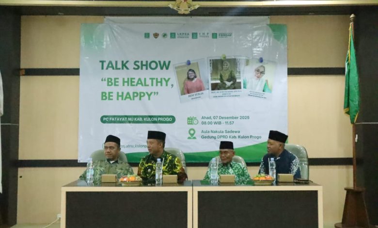 Kulon Progo (PC Fatayat NU Kulon Progo) – Rais Syuriah Pimpinan Cabang NU Kulon Progo KH Wasiludin buka secara resmi talkshow Be Healty Be Happy yang diselenggarakan Pimpinan Cabang Fatayat NU Kulon Progo di Gedung Nakula DPRD Kabupaten Kulon Progo. Dalam kesempatan tersebut Rais Syuriah PCNU Kulon Progo, secara resmi membuka acara dengan lantunan doa.